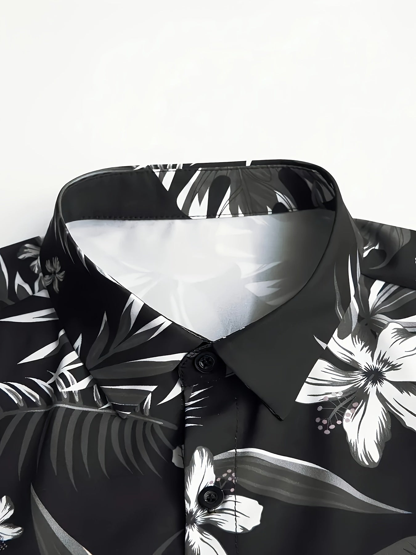 Men'S Summer Short-Sleeve Button-Up Shirt with Prints