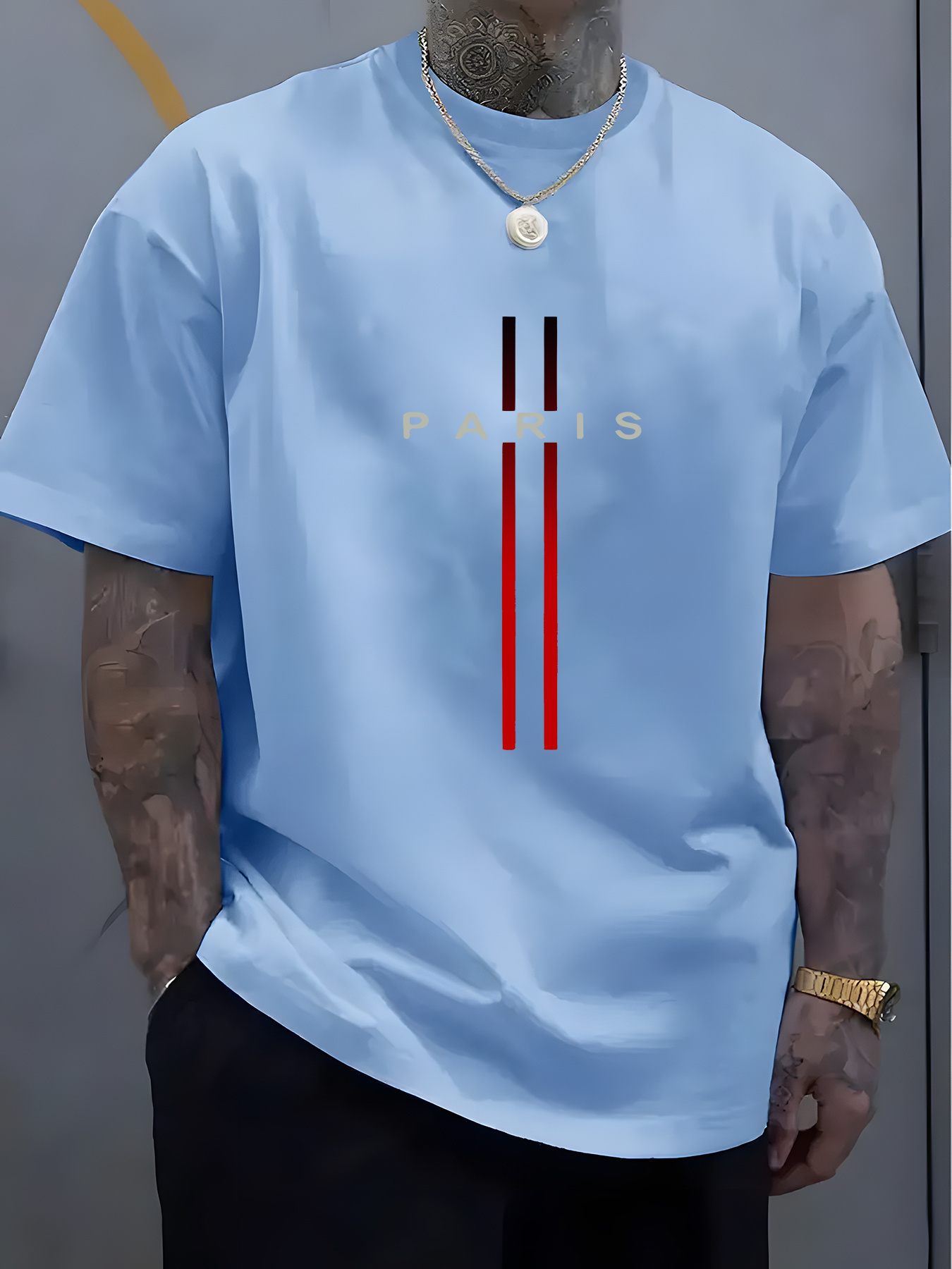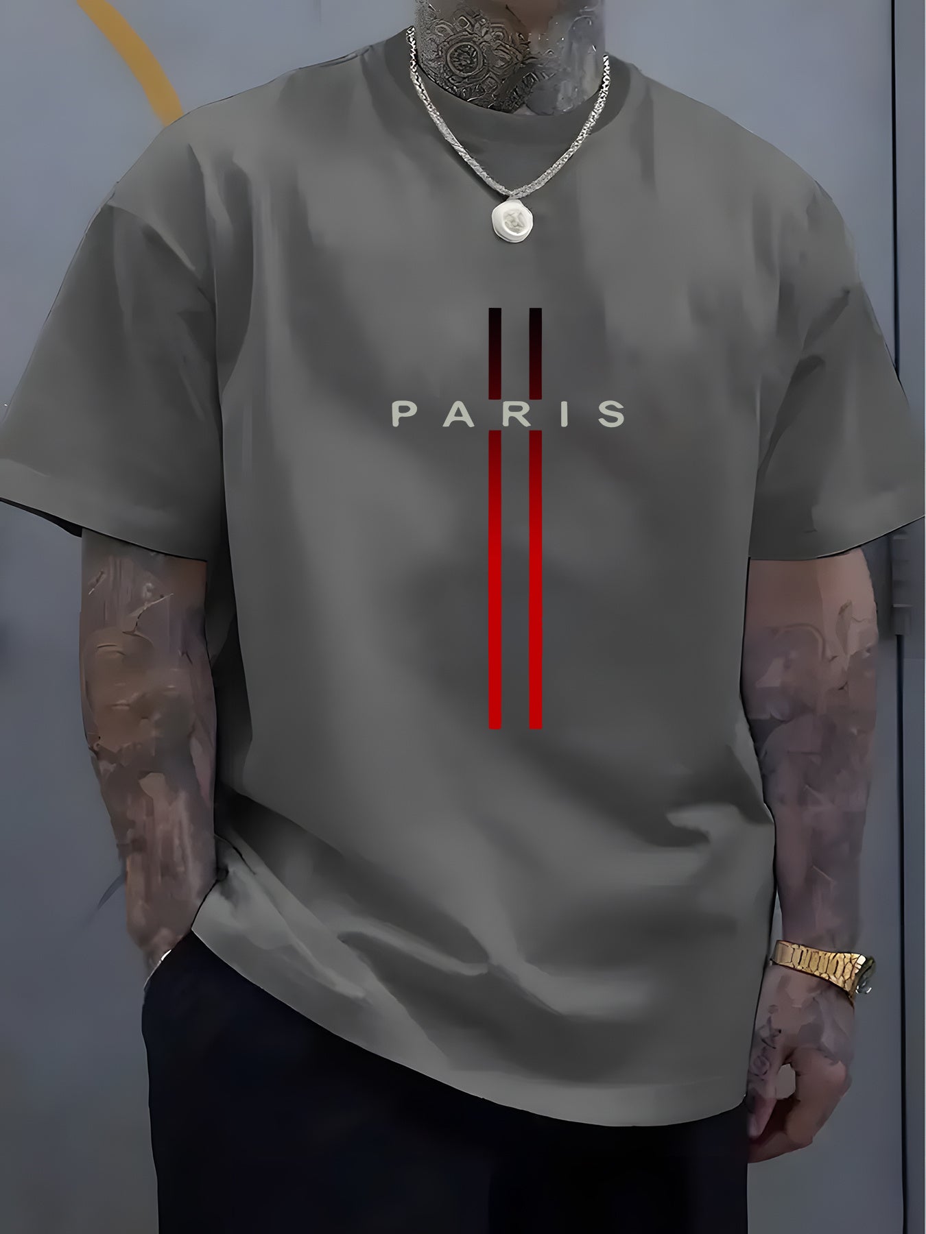 1pc Men'S Fashion Casual Crew Neck T-Shirt, 100% Polyester Knit Fabric, Slight Stretch, Alphabet Pattern, Summer Short Sleeve Tee