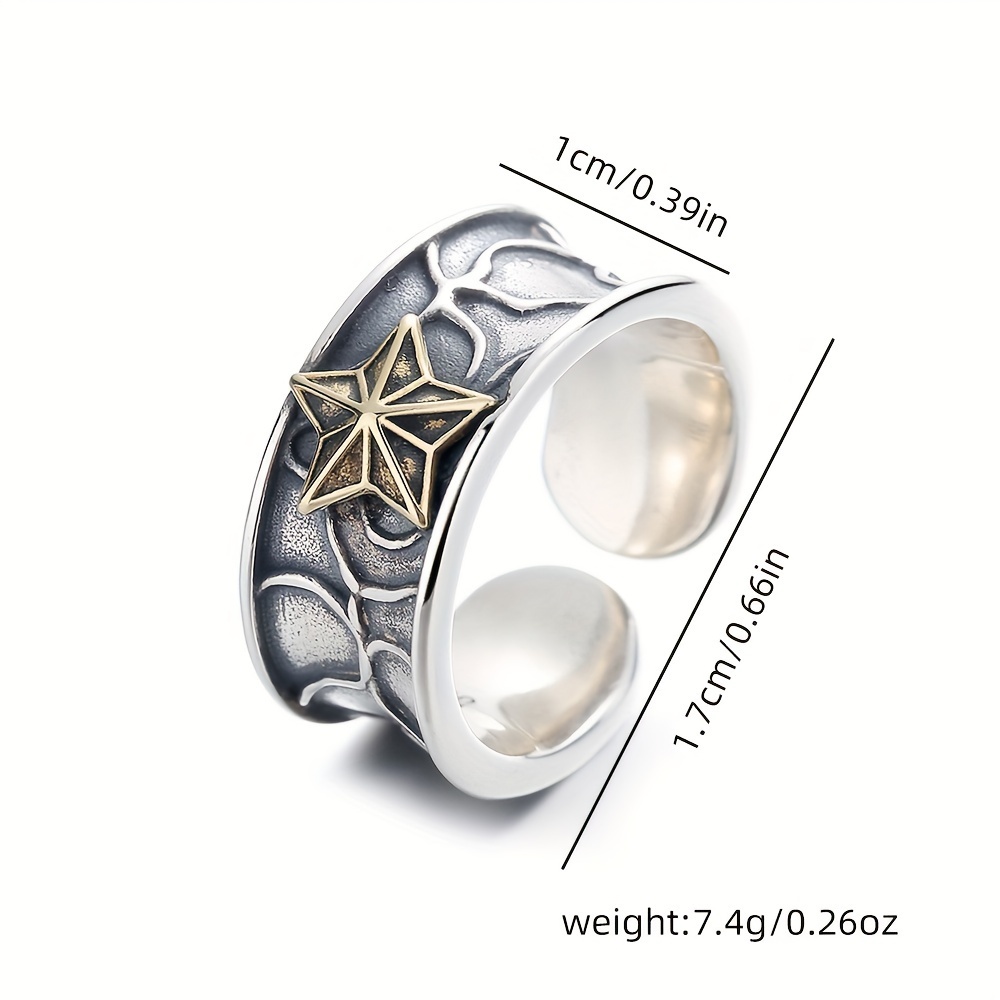 1pc s925 Pure Silver Retro Neutral Water Ripple Set with Copper Stars Thai Silver Ring, Punk Trendy Ring for Men and Women, Suitable for Parties, Approx. 7.4g