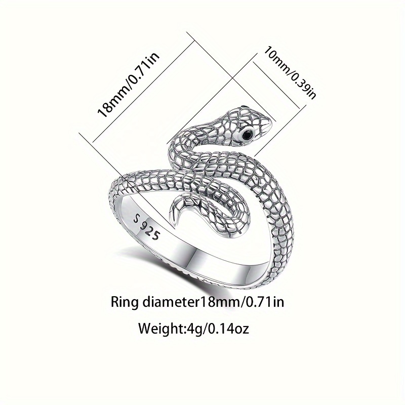 1pc Vintage Punk Style Adjustable Snake Ring for Women and Men, 925 Sterling Silver, Hypoallergenic, 4g, Daily Wear Jewelry