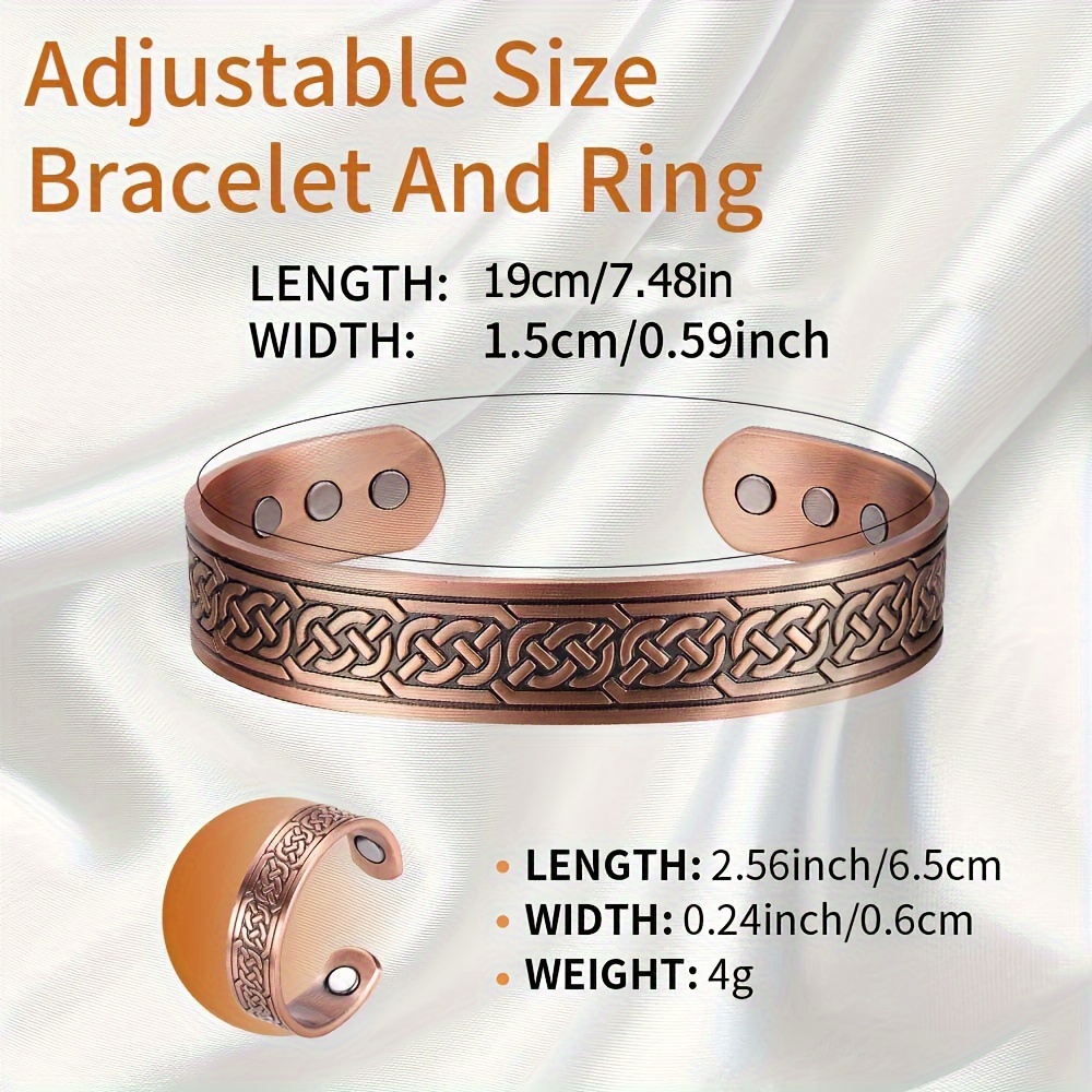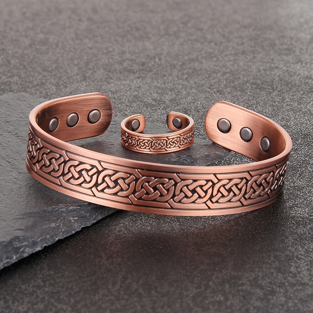 2Pcs Magnetic Copper Bracelet and Ring Set for Men, Adjustable Celtic Design, Natural Anti-Inflammatory Jewelry, Ideal for Christmas Gifts