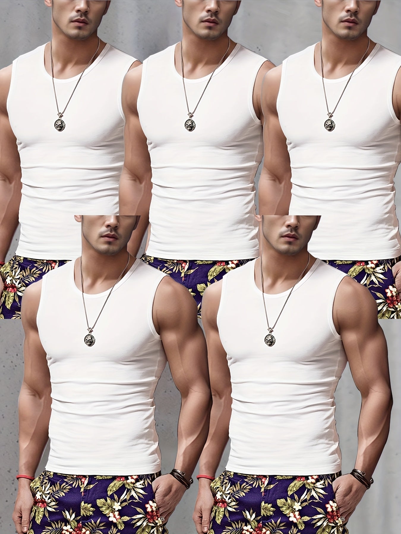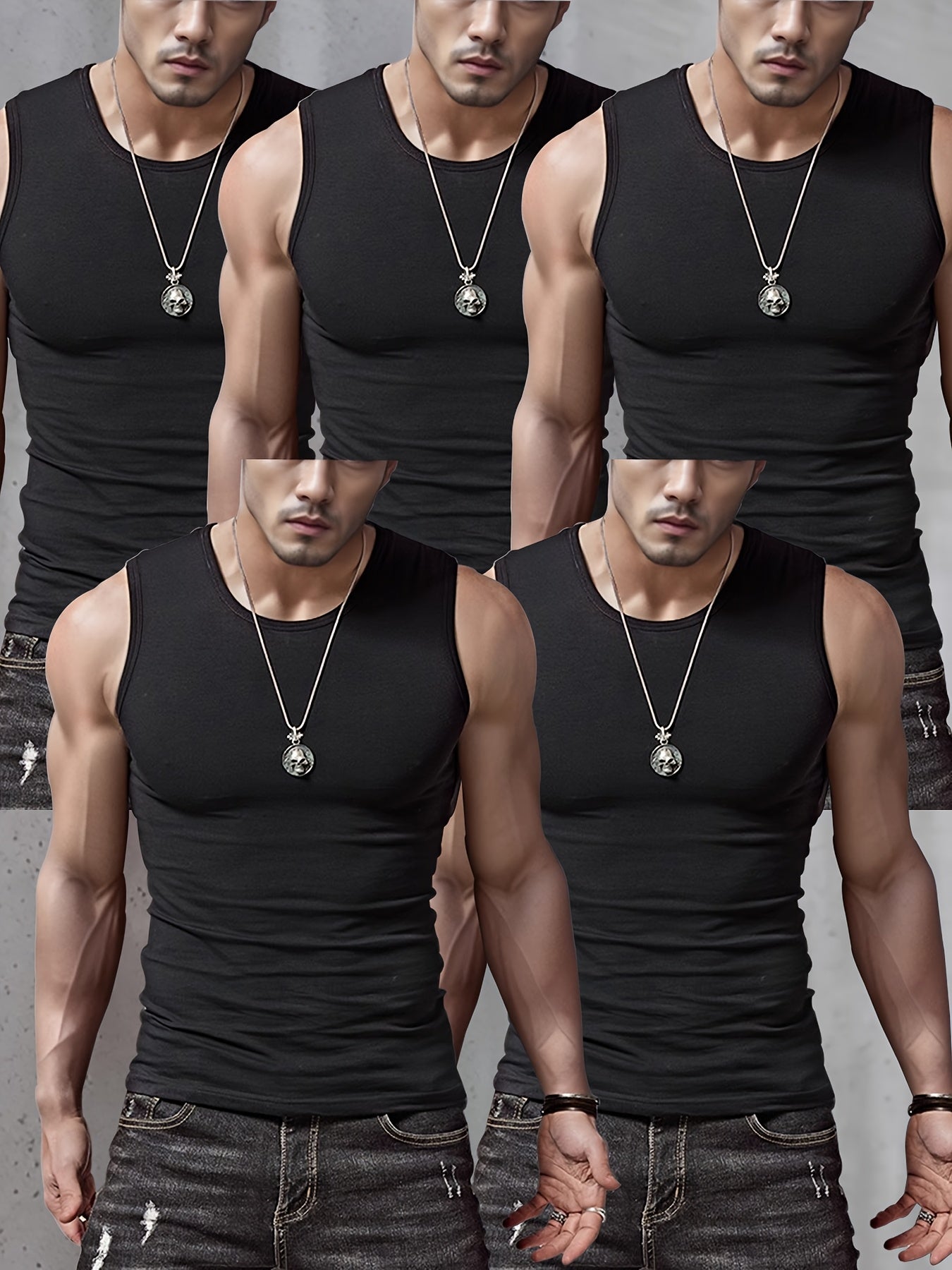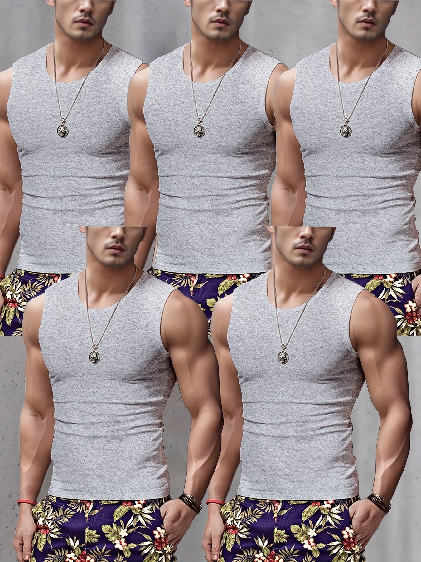 5 débardeurs pour hommes à larges épaules - Noir, Gris, Blanc - Sans manches, respirant, col rond - Pour le sport et le fitness