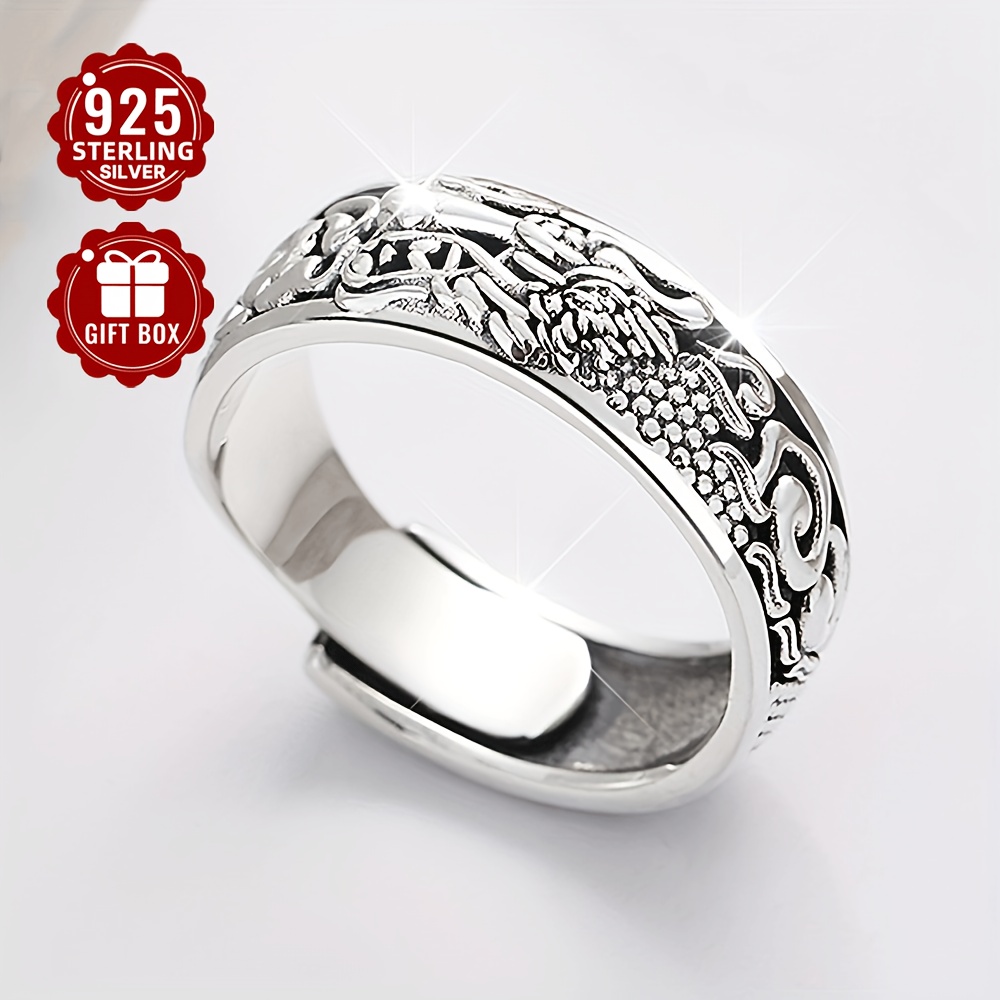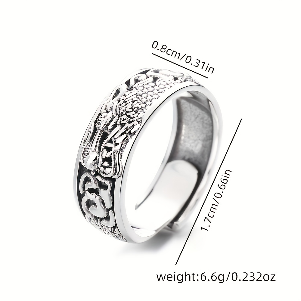 A Stylish And Bold Dragon Pattern Design Ring Made Of Sterling Silver, Weighing Approximately 6.6g, Suitable For Both Men And Women To Wear At Parties And Events.