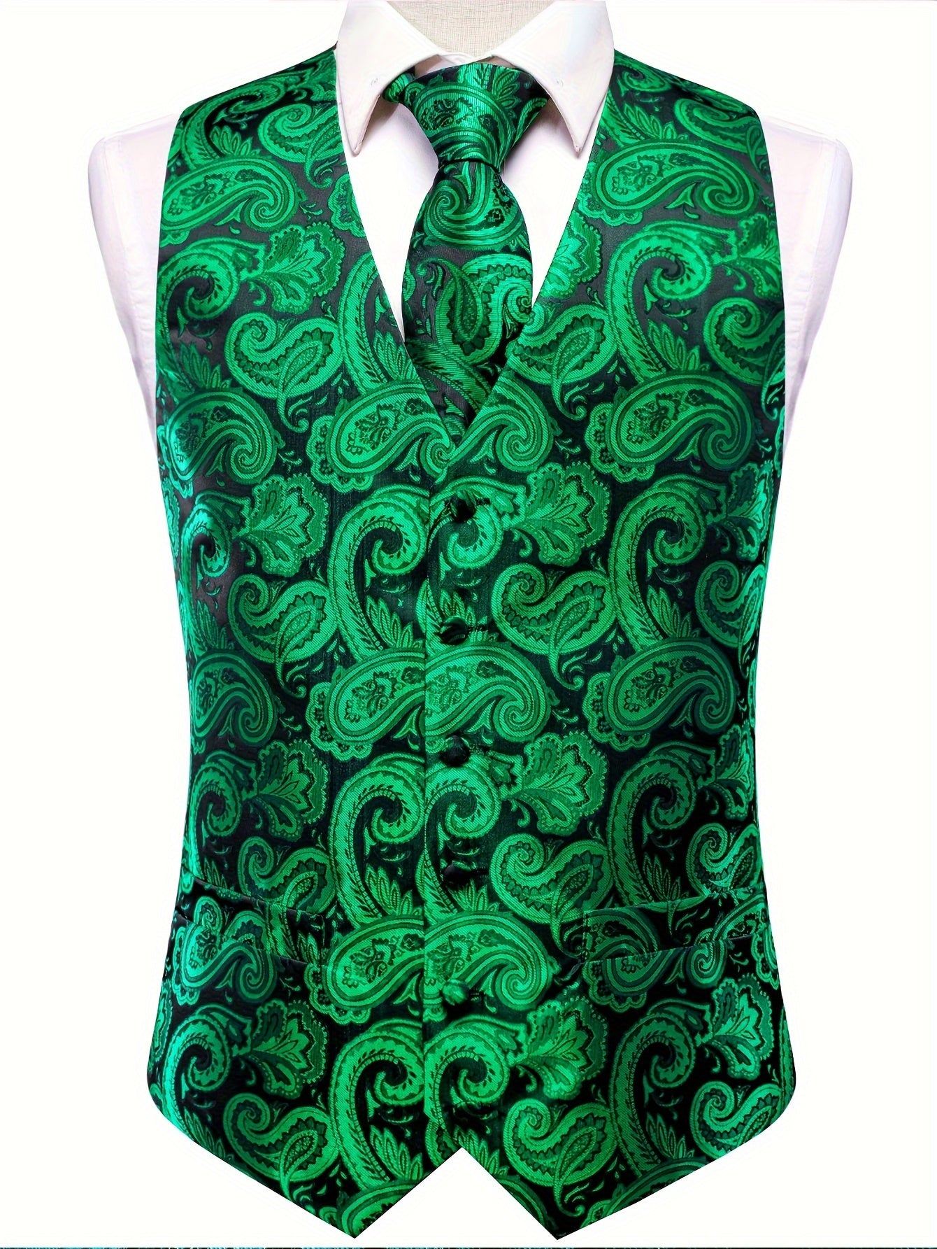 Gilet élégant en jacquard cachemire pour homme avec cravate + mouchoir + boutons de manchette pour mariage\u002Foccasions spéciales