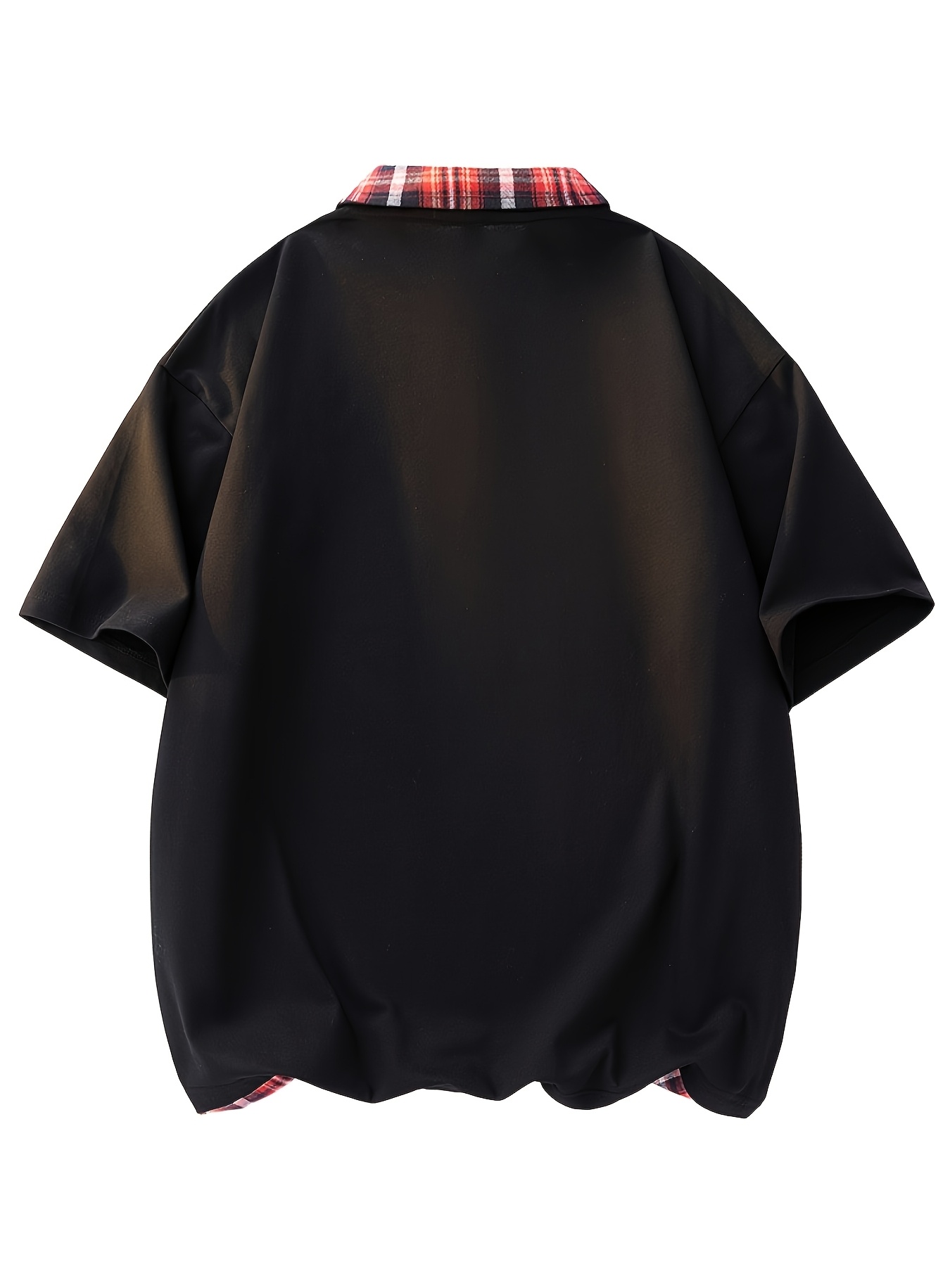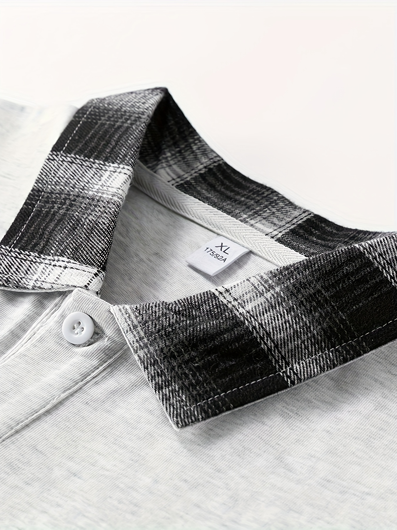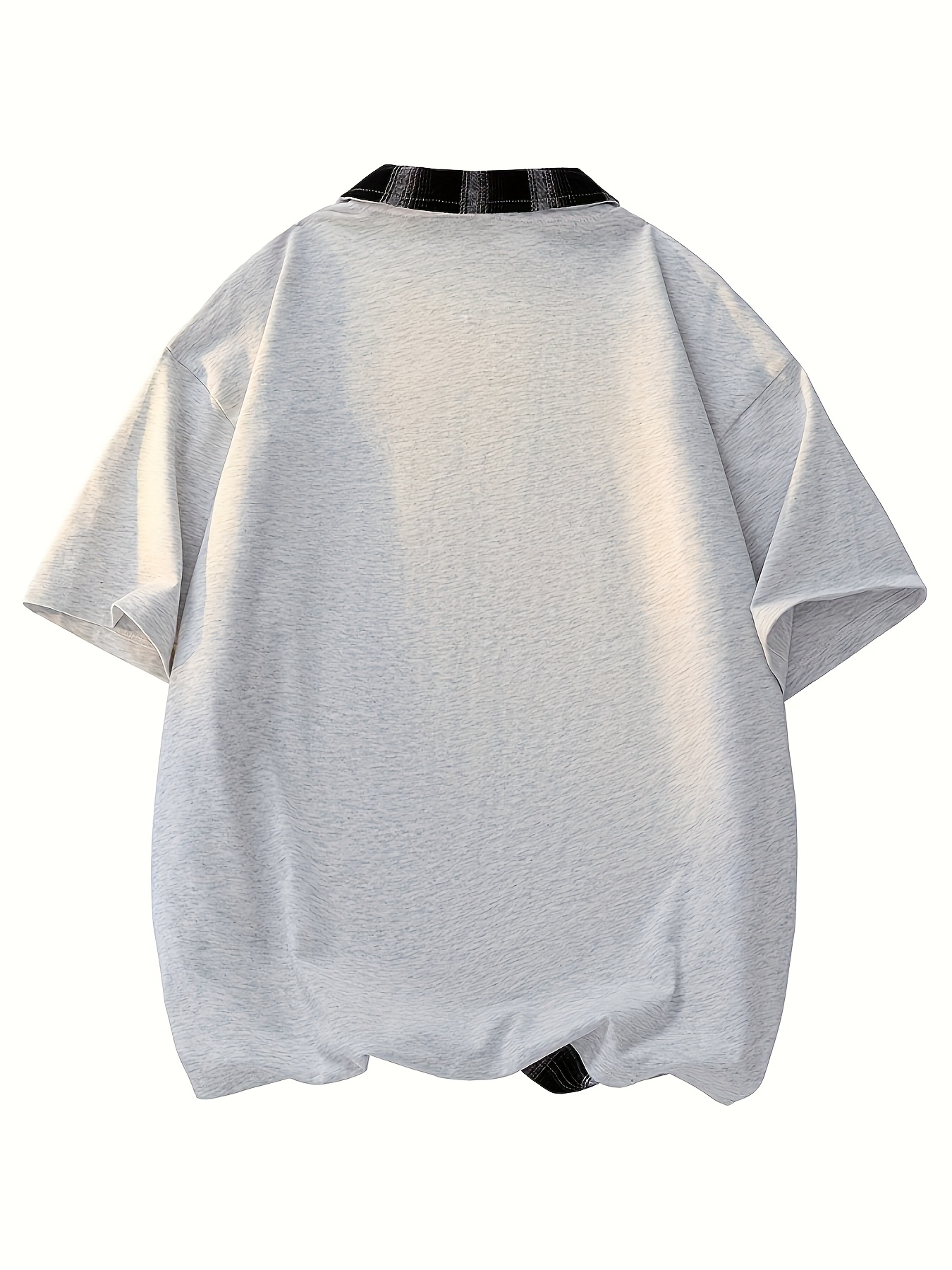 Men'S Casual Color Block Polo Shirt - Short Sleeve, Breathable Polyester, Summer Essential with Yellow and White Check Collar, Relaxed Fit for Weekend Attire, Casual Summer Shirt | Check Pattern Shirt | Polyester Fabric