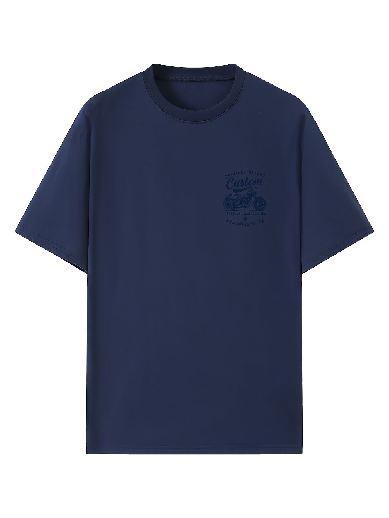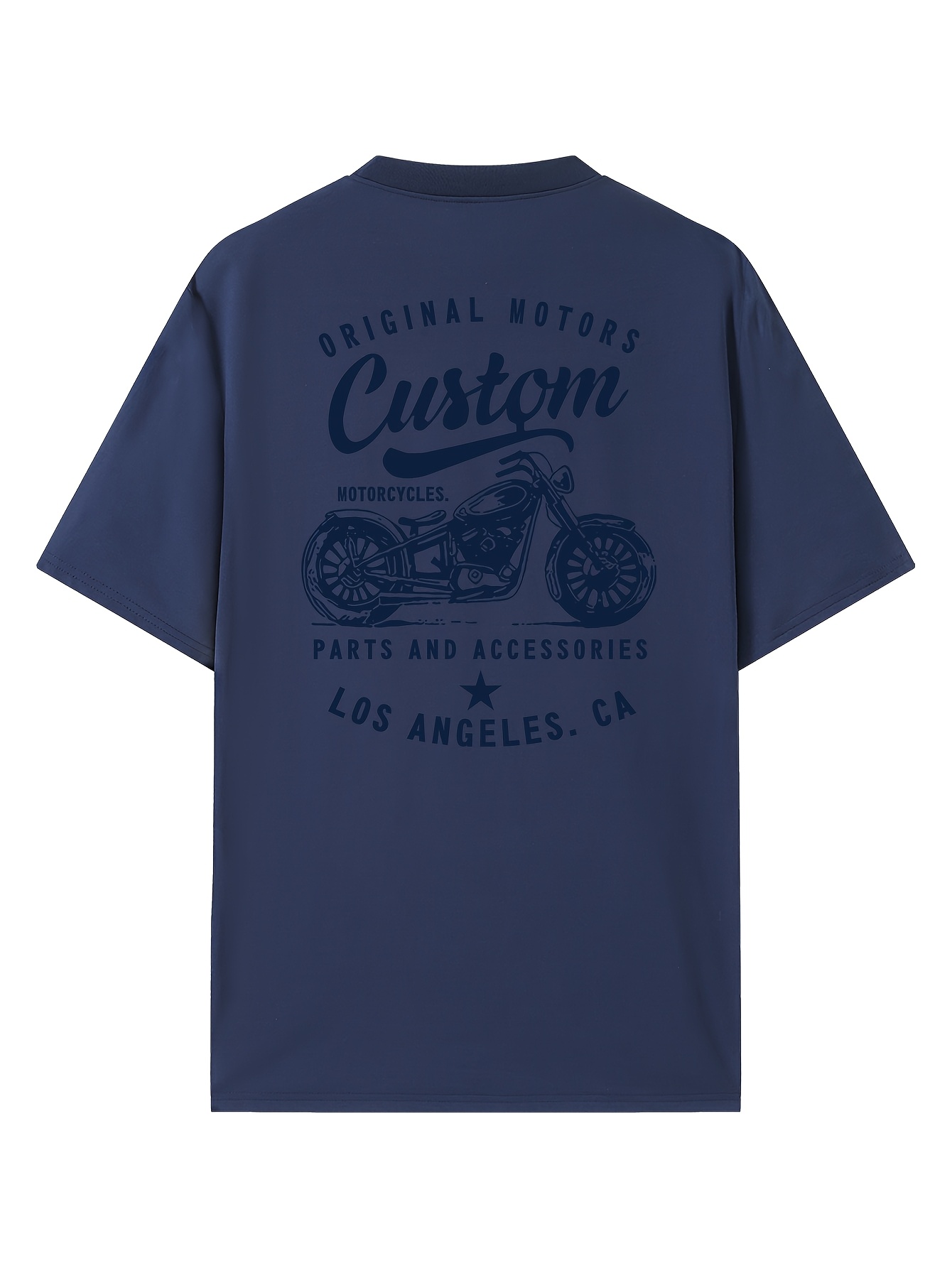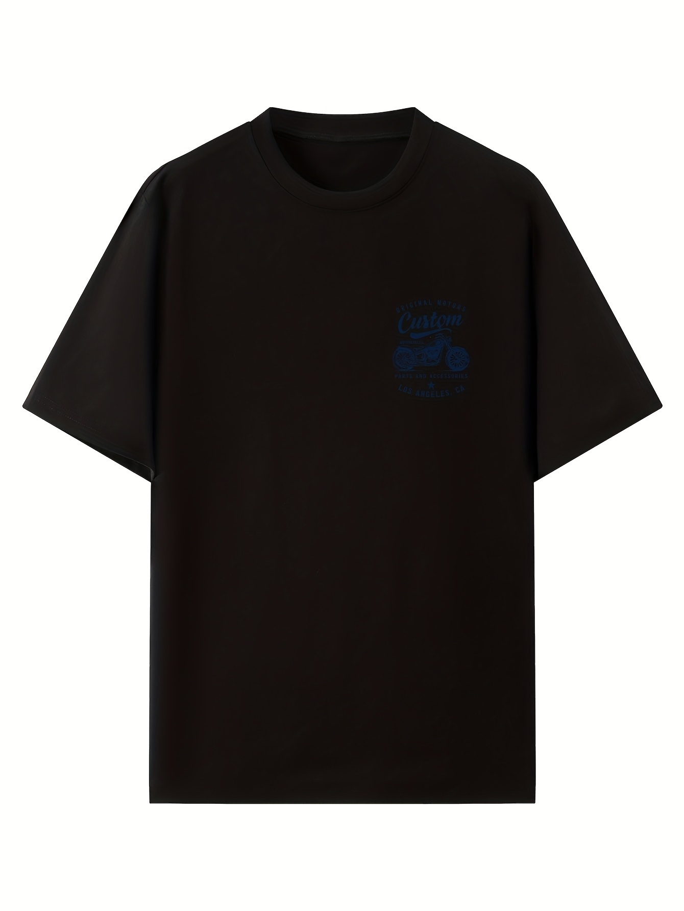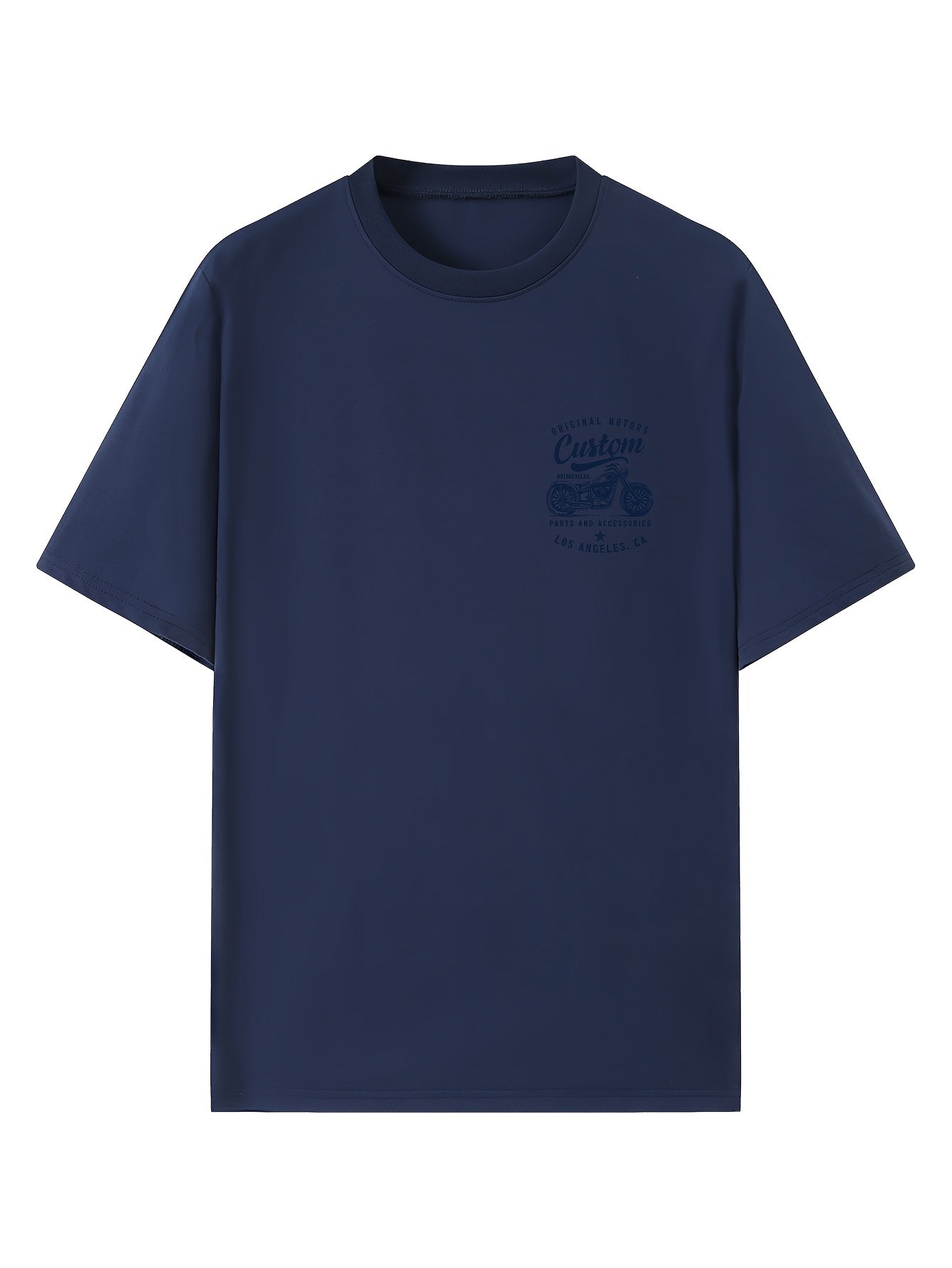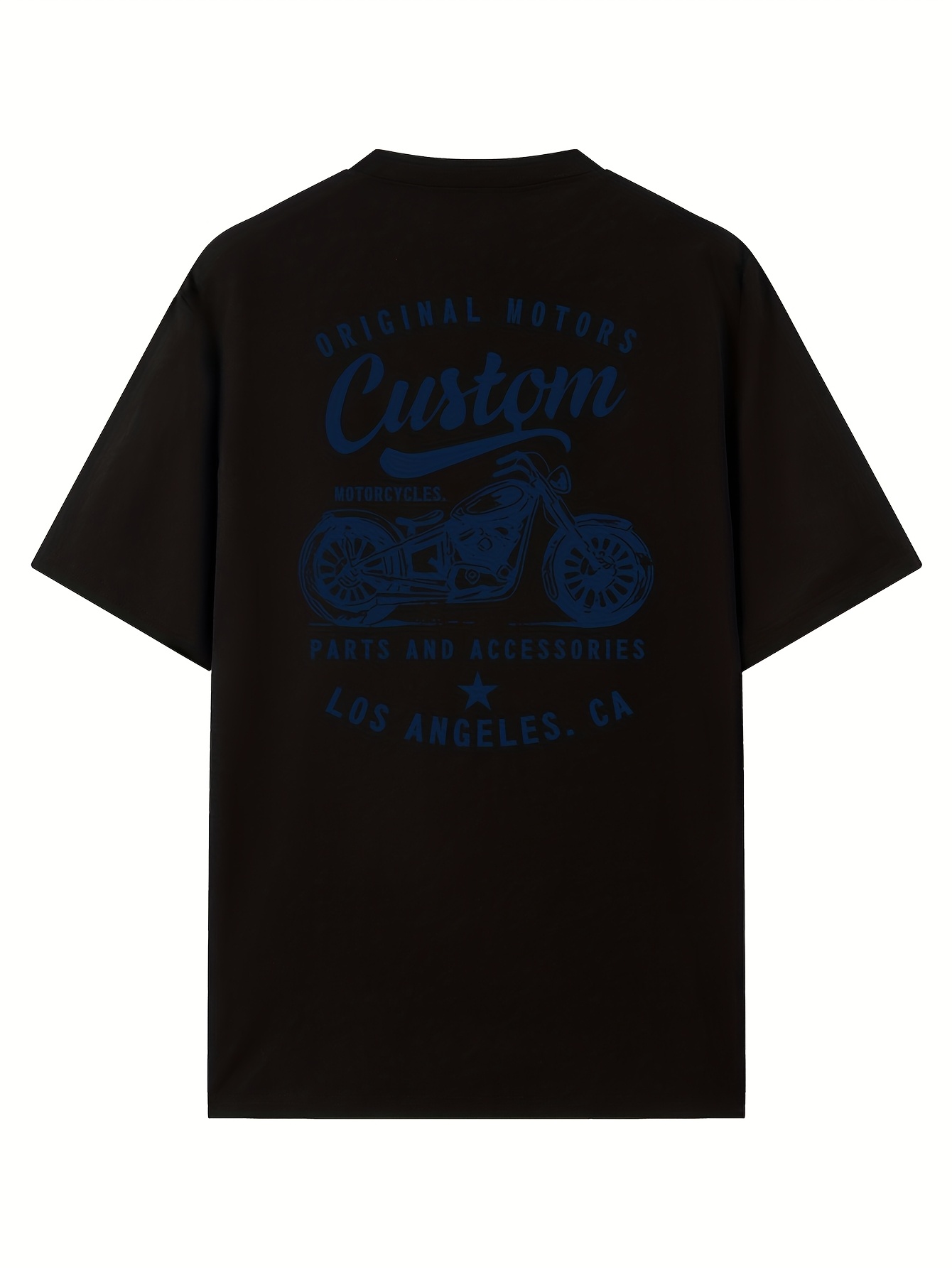 Men's Original Motorcycles Graphic T-Shirt - Casual Street Style Short Sleeve Crewneck Tee, White with Blue Print, Polyester Blend, Los Angeles Parts & Accessories Design
