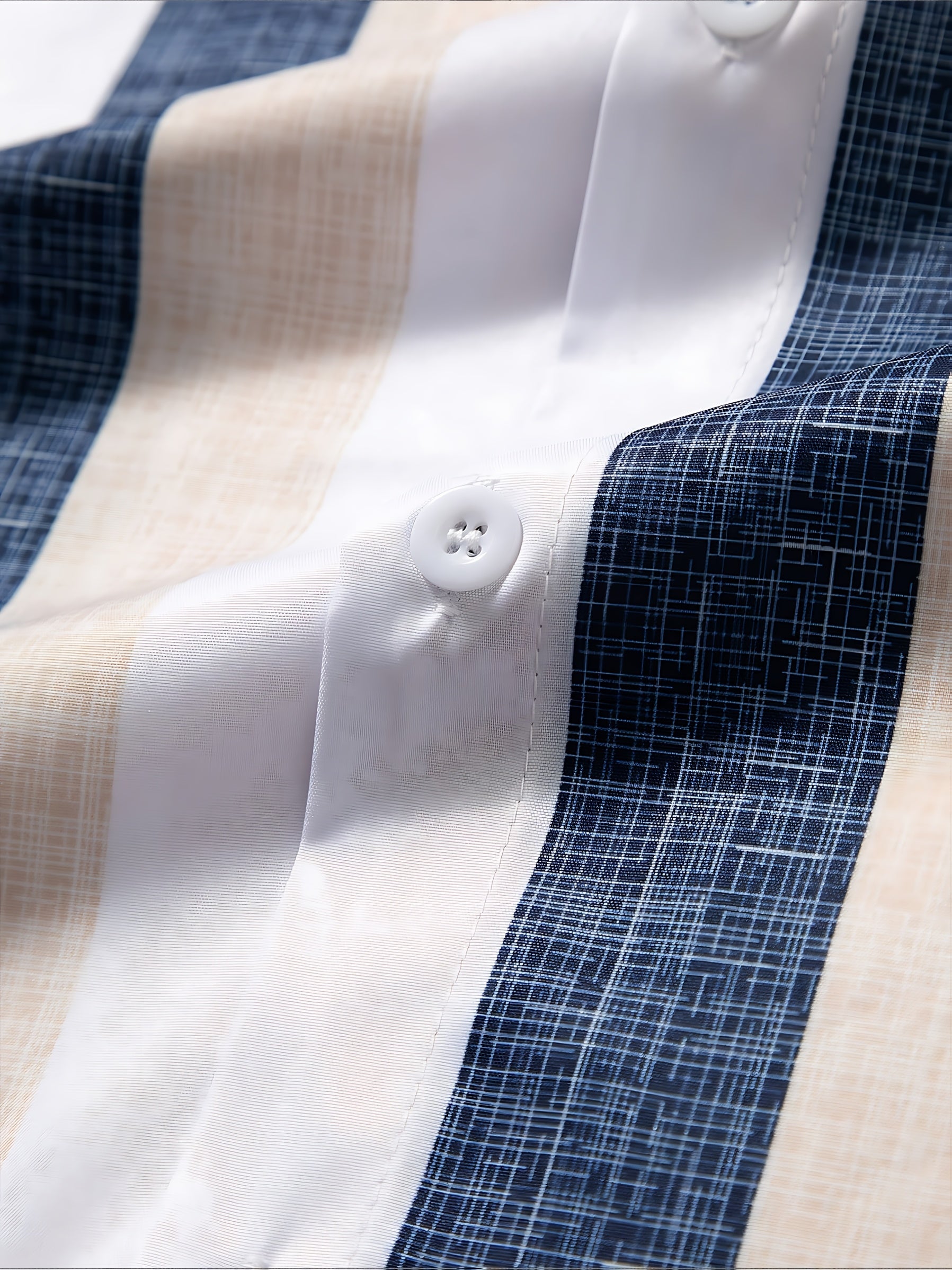 Men's Summer Casual Striped Button-Up Shirt - Short Sleeve, Lightweight & Breathable for Outdoor Activities, Beach, and Casual Attire, Beach Clothes, Beach Apparel, Classic Collar, Durable Clothing