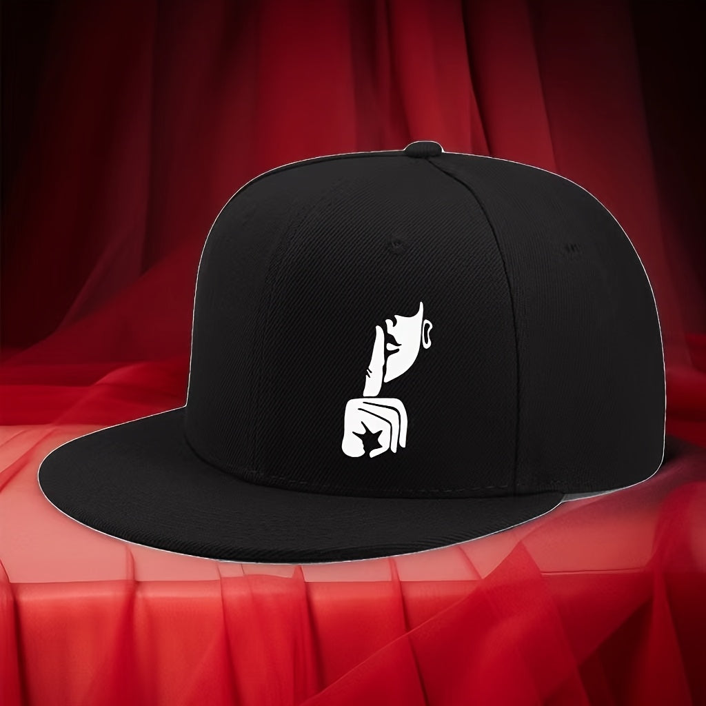 Unisex Hip-Hop Baseball Cap | Adjustable Polyester Snapback | Retro Style with Geometric Shush Gesture Design | Lightweight & Machine Washable | Flat Brim for Outdoor Sports, Outdoor Sports Cap | Urban Fashion Hat | Machine Washable Hat