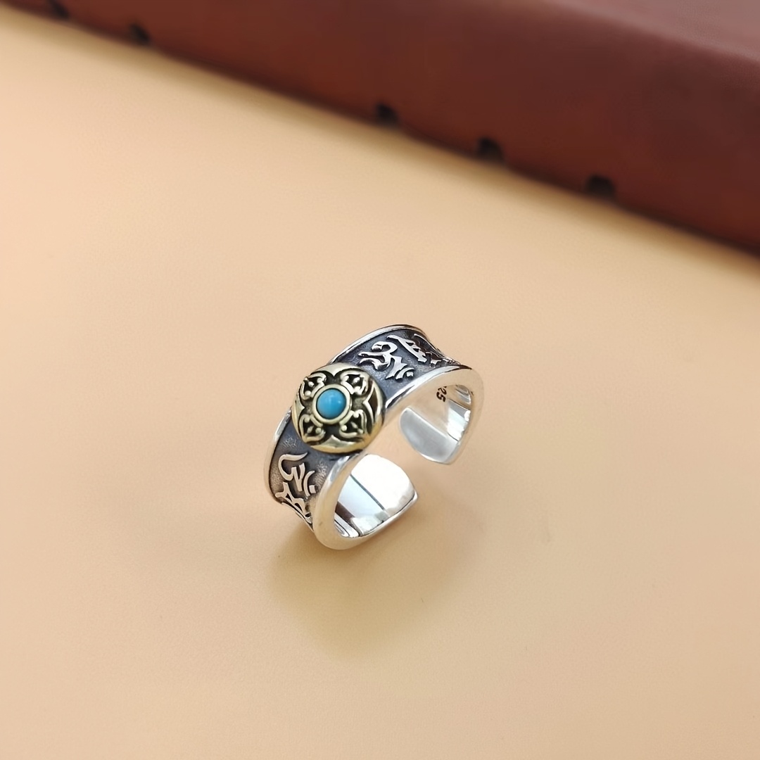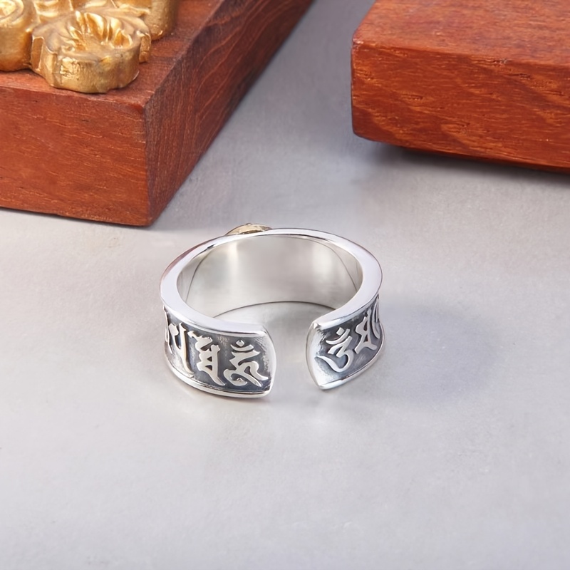 Vintage Six-Word Mantra Sterling Silver Ring for Men, S925 Silver Distressed Craftsmanship Creative Index Finger Ring